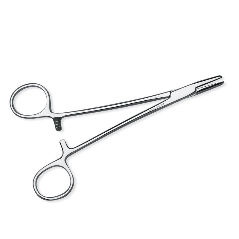 El mecanismo de cierre tipo cremallera proporciona una sujeción firme y constante de la aguja, evitando movimientos indeseados y permitiendo mantener la tensión adecuada durante toda la maniobra de sutura. Este sistema también contribuye a reducir la fatiga manual del profesional al distribuir la fuerza necesaria de forma eficiente, permitiendo trabajar durante procedimientos prolongados con mayor estabilidad y control. La textura de las mandíbulas internas está diseñada para sostener la aguja sin dañarla ni deformarla, asegurando un rendimiento predecible incluso con calibres finos.
